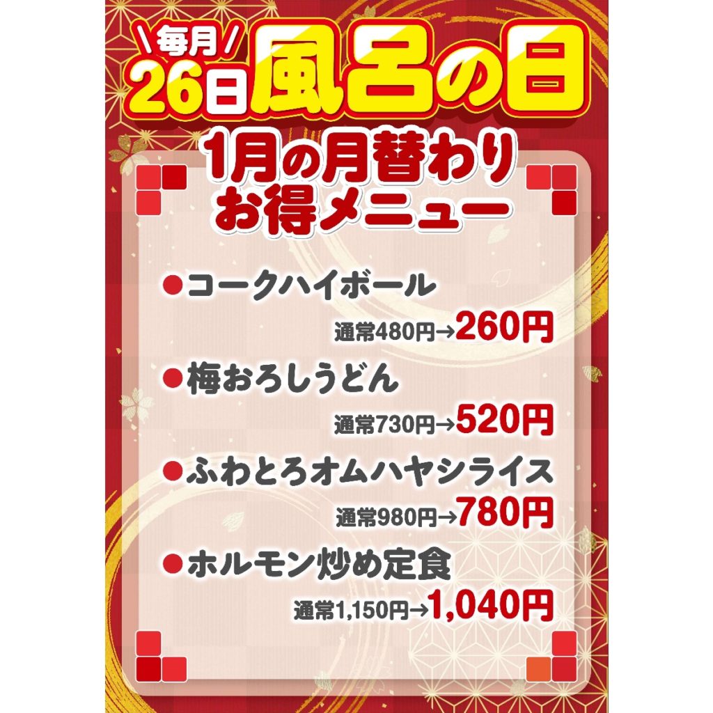 1月 風呂の日お得メニュー