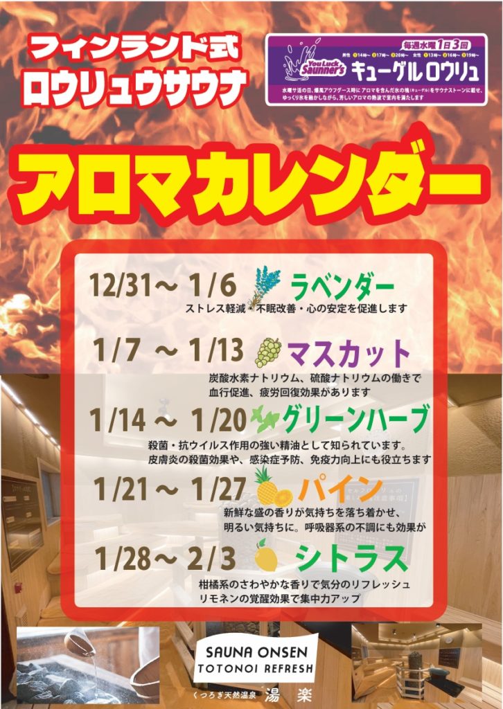 1月 高温サウナアロマカレンダーのお知らせ